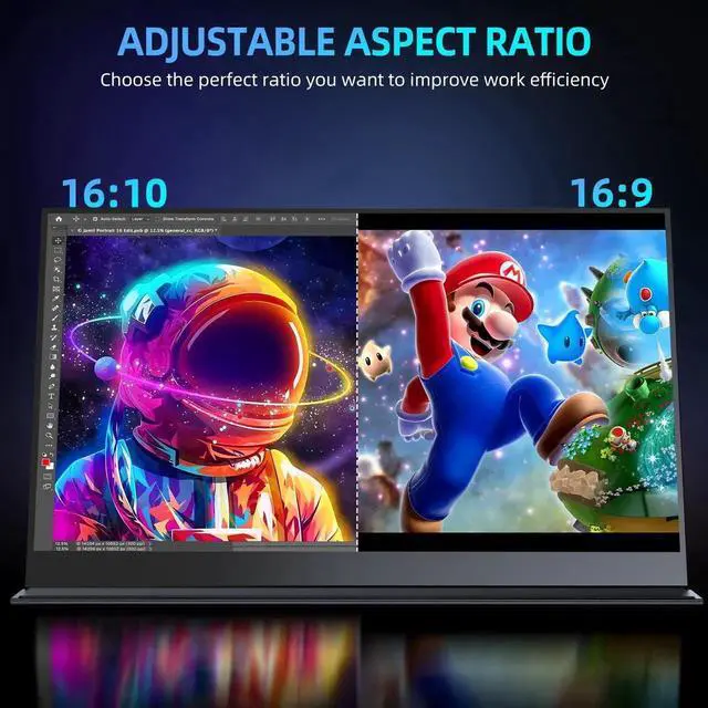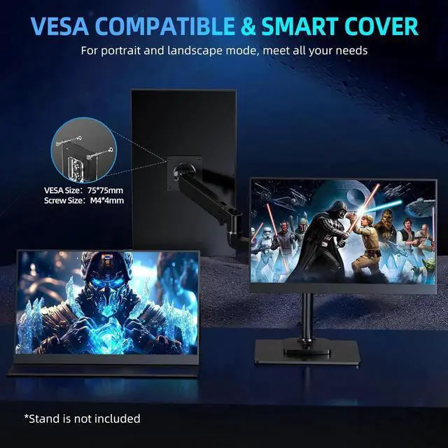 Wide Compatibility & VESA Mount: Equipped with 2 Type-C ports, Mini HDMI, and VESA mounting support (75x75@M4), easily connect to game consoles, laptops, PCs, tablets, and phones.