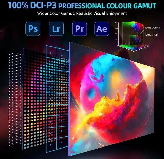 100% DCI-P3 Color Gamut & Matte IPS Screen: Features a 100% DCI-P3 matte IPS screen with 178° wide viewing angles, reduced glare, and vibrant colors, ideal for design, photo editing, and multimedia.