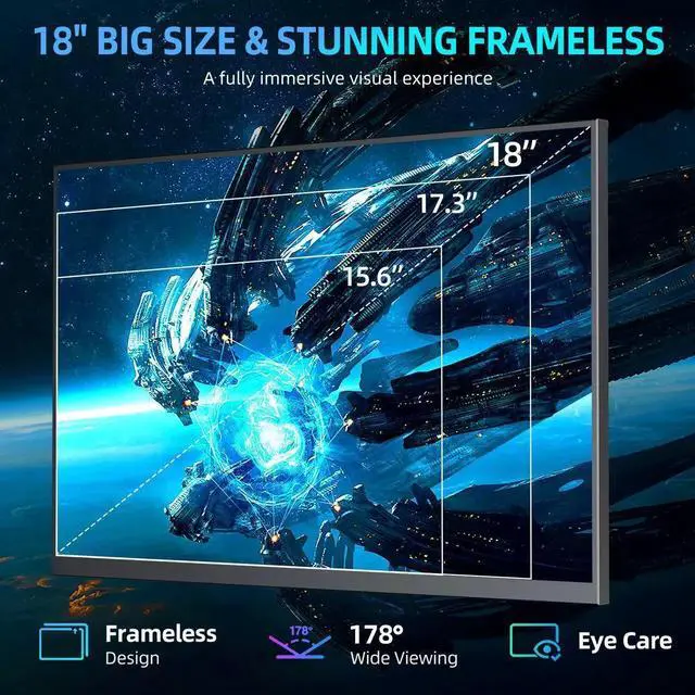 18" Large Eye-Care Display: Enjoy a spacious 18-inch screen with blue light filter, anti-glare, and flicker-free technology to reduce eye strain, making it perfect for long gaming sessions and mobile work.