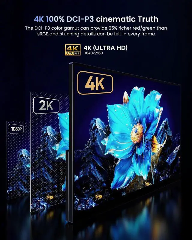 Experience ultra-sharp 3840×2160 detail and incredibly fluid motion with a 144Hz refresh rate. Ideal for gaming, content creation, and multitasking, this portable monitor delivers a desktop-level immersive experience on the go.