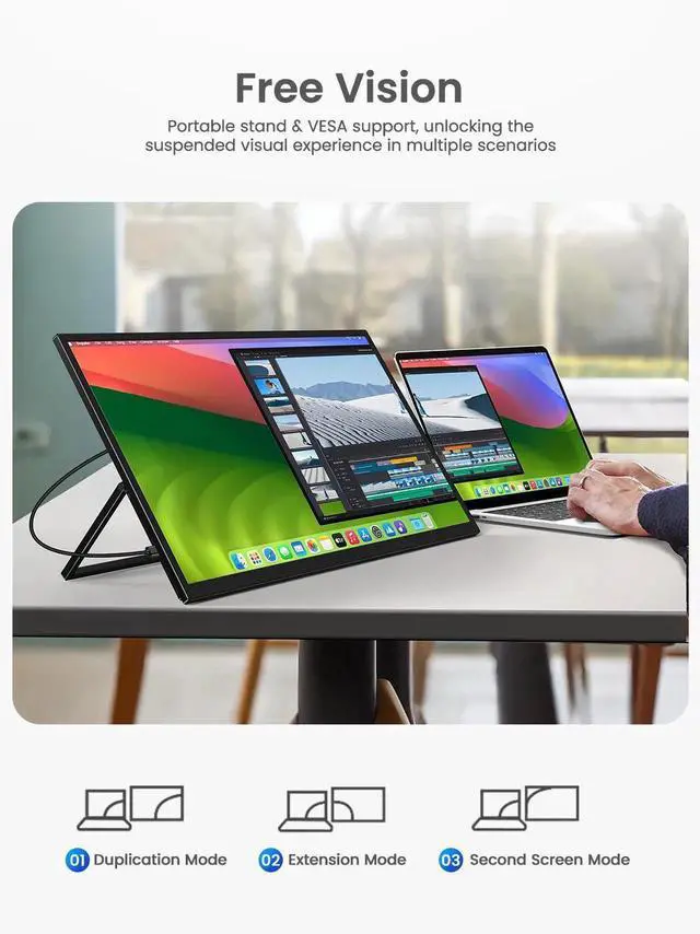 Crisp 2K Display: Experience vibrant visuals with this 2K portable monitor, offering a high-definition 16:10 aspect ratio and a matte screen that reduces glare and improves clarity.