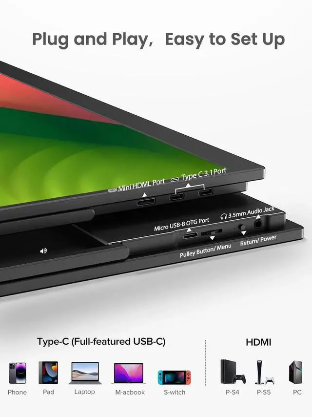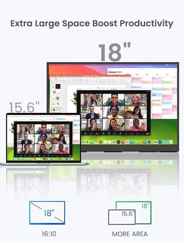 Superb 18-Inch Portable Display: Enjoy a large 18-inch screen with a sleek, frameless design, ideal for immersive gaming and productivity while remaining highly portable.