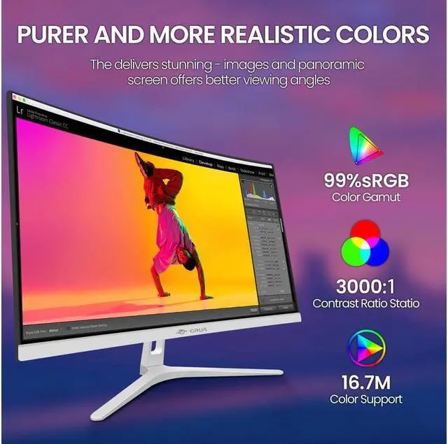 The monitor is not only suitable for general office/Business/gaming monitors but also can adapt well to household use. The angle of the display can be adjusted. The monitor has Bezel-Less and Ultra-Light Sleek Design with a round base, which is both aesthetics and practicality. The monitor has FreeSync Technology, Flicker-Free technology, and Blue Light Filter, which improves work efficiency and brings a comfortable user experience
