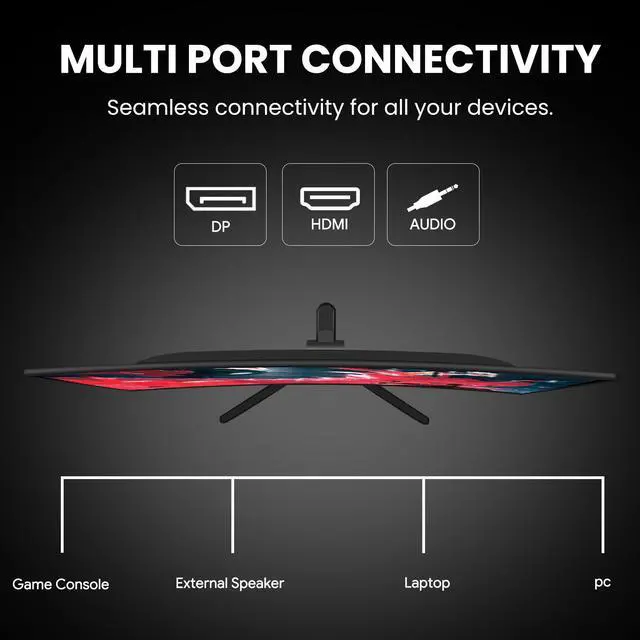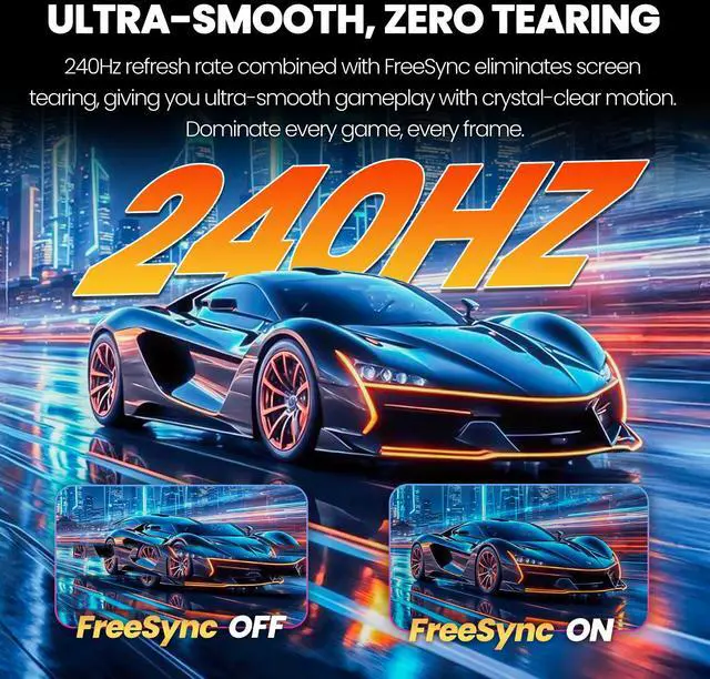 Experience gaming like never before with this CRUA 24-inch curved gaming monitor. The stunning 1920 x 1080P Full HD display delivers crystal-clear visuals at an impressive 240Hz refresh rate, ensuring butter-smooth gameplay without motion blur. With 120% sRGB color support, every scene comes alive with vibrant, accurate colors that make both gaming and content creation a visual treat. The monitor features AMD FreeSync technology, eliminating screen tearing and stuttering for seamless gaming performance. Its versatile design includes wall mount compatibility, giving you the flexibility to create your ideal setup. Whether you're diving into intense gaming sessions or handling professional tasks, this curved monitor provides an immersive viewing experience that reduces eye strain during extended use. The sleek curved design not only enhances aesthetics but also provides a more natural field of view, making it perfect for both gaming enthusiasts and office professionals.