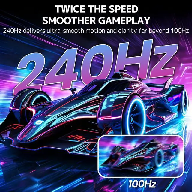 Enjoy next-level immersion with a 240Hz gaming monitor. Smooth visuals, reduced motion blur, and crisp clarity deliver a seamless experience for racing, shooters, and action games
