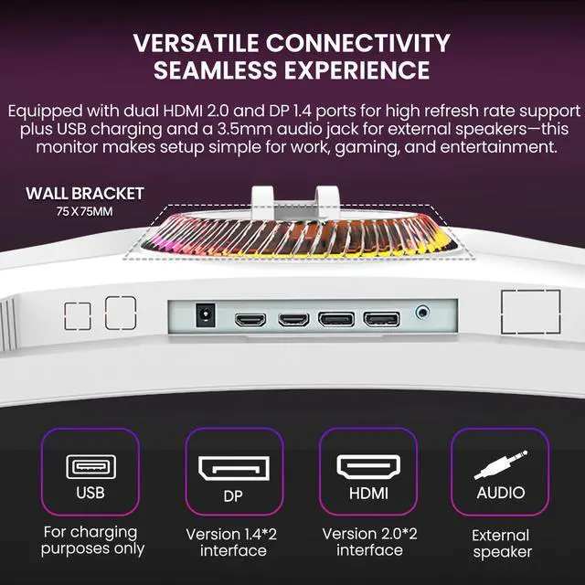 The height-adjustable stand allows you to tilt and raise the display to your preferred position, supporting a more ergonomic posture during long work or gaming sessions. HDMI 2.1 and DisplayPort 1.4 inputs ensure compatibility with modern PCs, laptops, and gaming consoles, giving you the bandwidth needed for high resolution and high refresh rate performance. With VESA mount compatibility, you can also mount the display to a monitor arm or wall to free up valuable desk space and create a cleaner, more flexible setup.