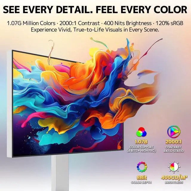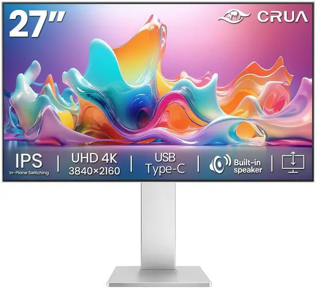 With its sleek silver metal finish, the CRUA 27" 4K monitor blends seamlessly into any modern desktop or interior design. More than just a display, its a versatile all-in-one solution that combines professional-grade performance, user-centric design, and unbeatable value. Whether youre a creative professional, a remote worker, a student, or a casual gamer, this monitor elevates every visual taskdelivering sharpness, color accuracy, and convenience that transform your daily computing experience.
