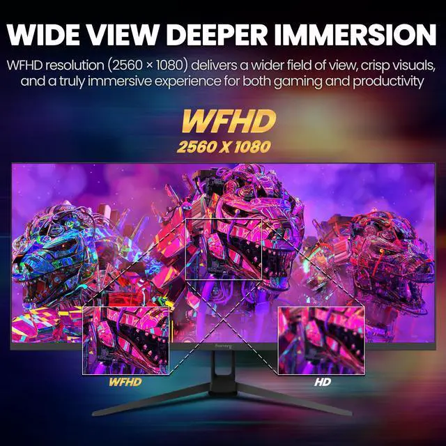 - Ultra-Wide 34" IPS Monitor - Enjoy a cinematic viewing experience with a 2560×1080 WFHD resolution and 21:9 aspect ratio.