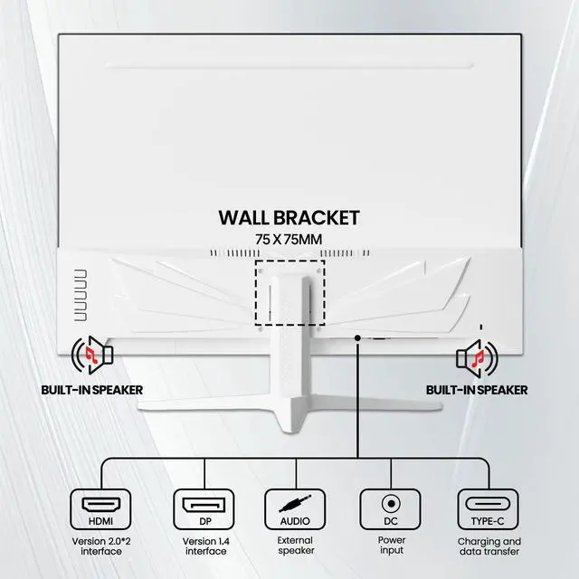 - Clean, Minimalist DesignSlim white chassis with tilt-adjustable stand (-5° to +15°) and 75 × 75 mm mount holes blends seamlessly into any home or office setup.