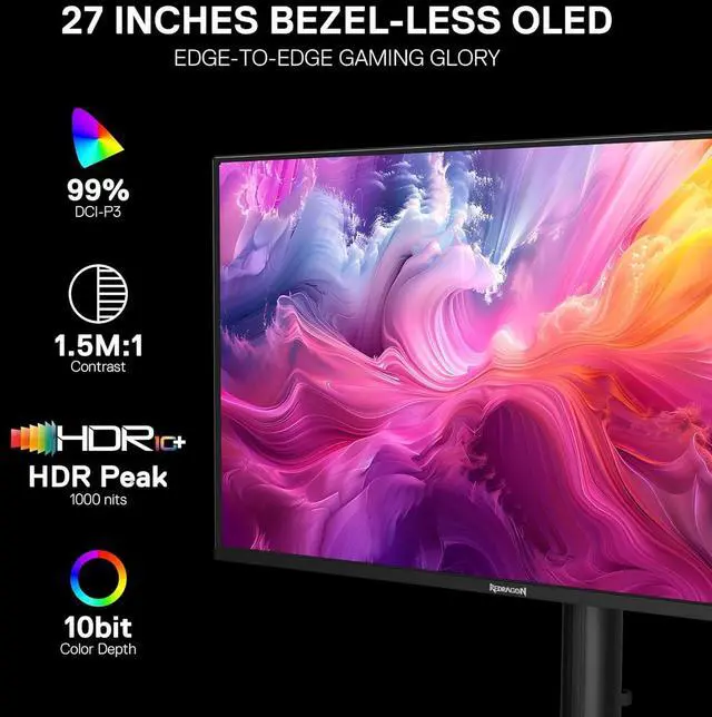 Stunning Visuals with OLED Technology Experience breathtaking visuals with the Redragon GM272 Gaming Monitor. The advanced OLED display delivers vibrant colors and deep blacks, making it perfect for immersive gaming sessions. With a QHD resolution, every detail comes to life, ensuring your gaming experience is nothing short of spectacular.