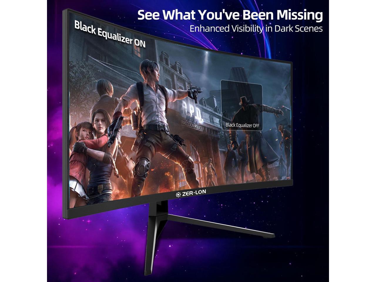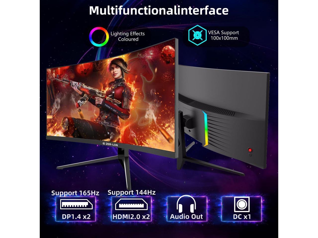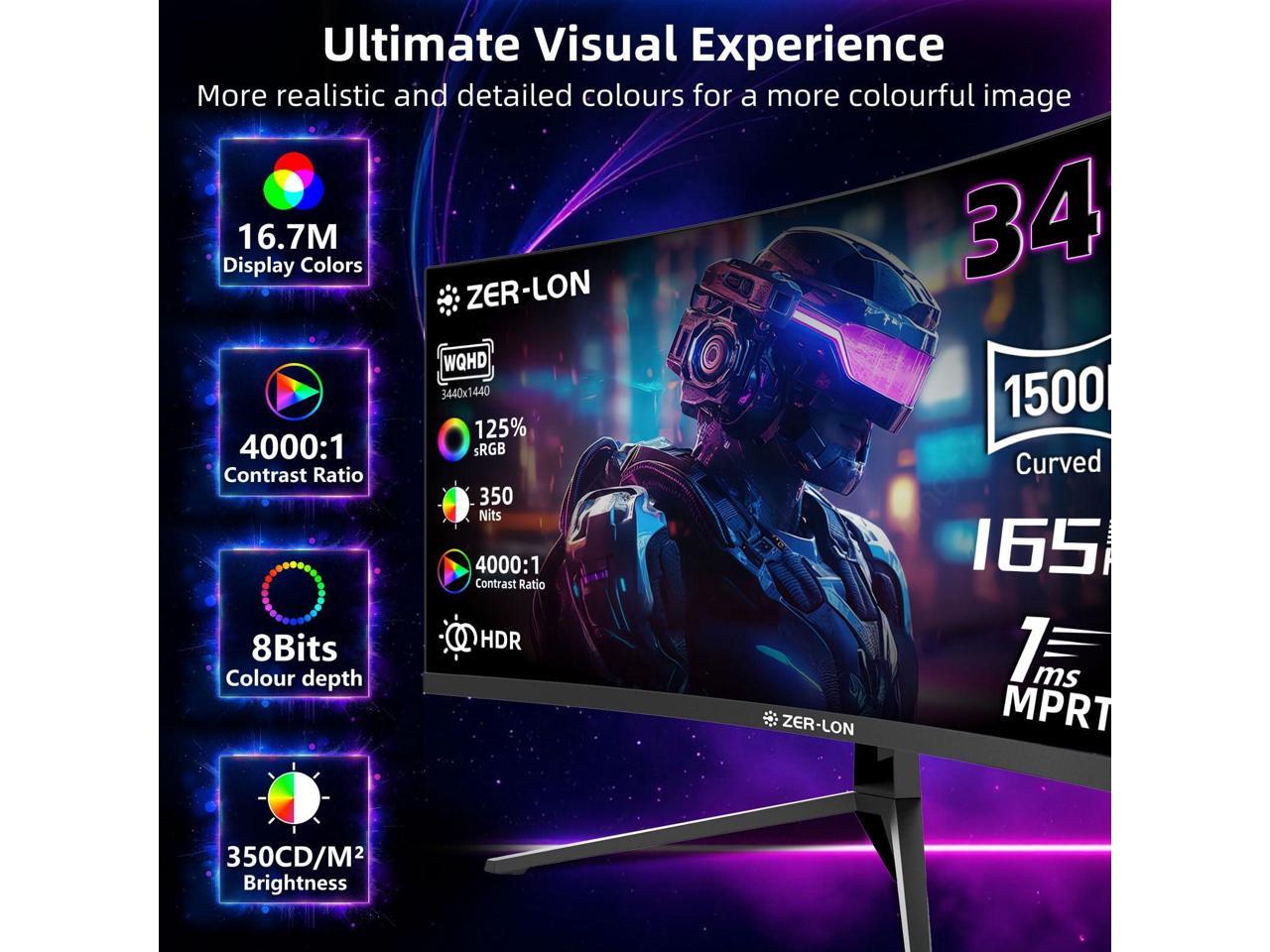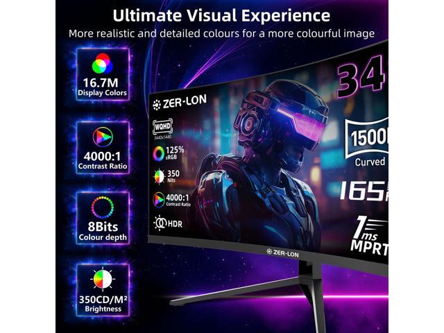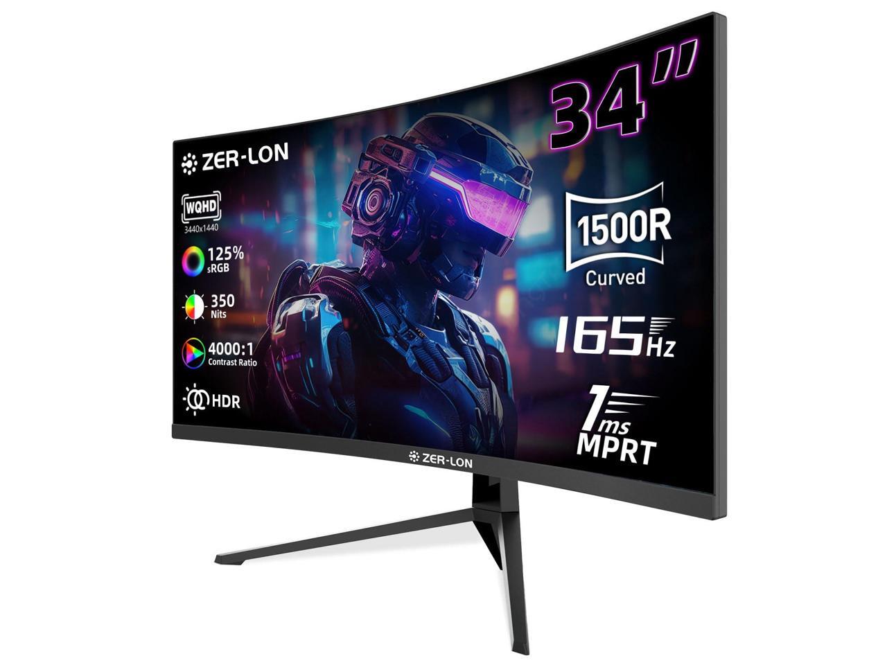ZER-LON 34 inch Ultrawide Curved Gaming Monitor, 21:9 WQHD 3440×1440 165Hz Computer Monitors, 1500R 1ms(MPRT), 125% sRGB, 350nits, FreeSync, HDMI2.0 x2, DP1.4 x2, Wall Mountable/Tilt Adjustable Black