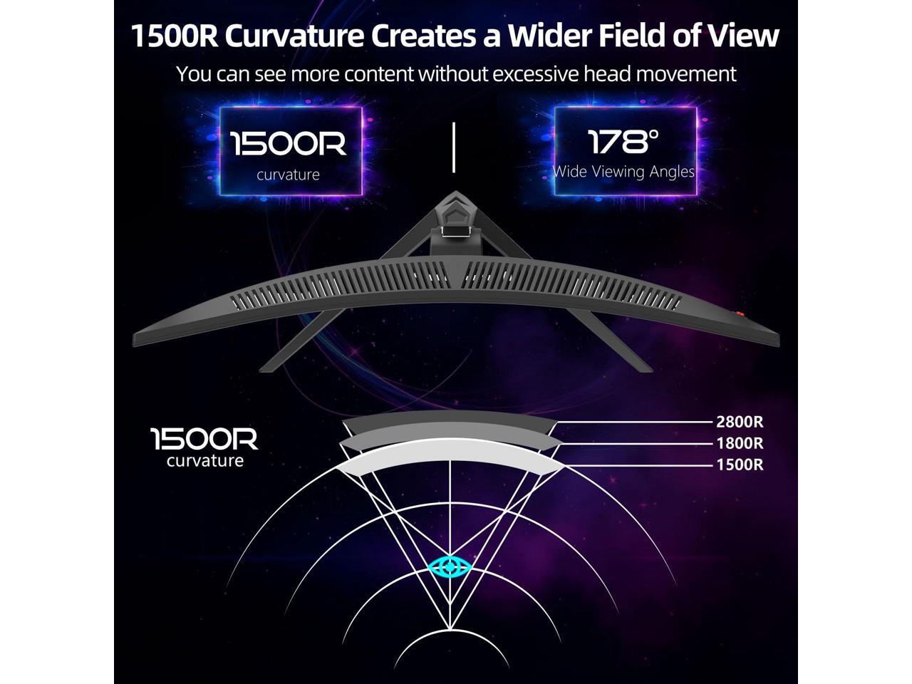 - Stunning Picture Quality: With a brightness of 350 cd/m², 8-bit color depth, and 125% sRGB coverage, this 1500R curved gaming monitor offers vivid, rich colors and enhanced visual detail. HDR technology further elevates the viewing experience for immersive gaming.