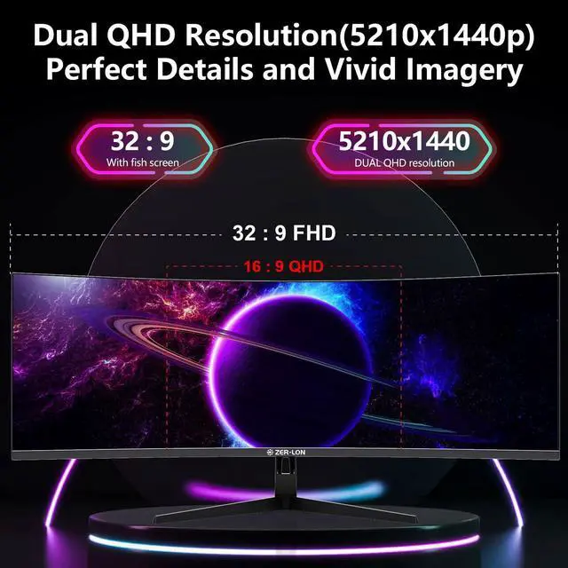ZER-LON 49" Curved Gaming Monitor 165Hz 1500R 32:9 Daul QHD 5120 x 1440 Ultrawide Computer Monitor, 127% sRGB, 4000:1, FreeSync, HDR, DisplayPort, HDMI, Supports Wall Mounted Installation