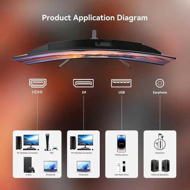 Tips: This product does not have a built-in speaker.This monitor has a curvature of 3000R and is classified as a slightly curved screen