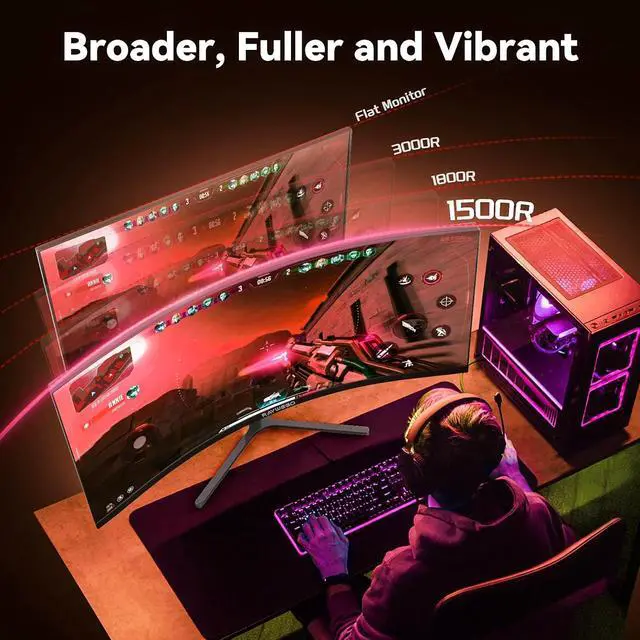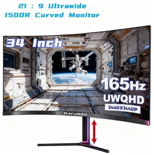 Immersive 1500R Curvature: 34inch curved monitor 165hz Immerse yourself in your work and gaming with the 1500R curved design, providing a wider field of view and enhanced depth perception. The curved structure creates a more natural viewing experience, drawing you into the action on screen.