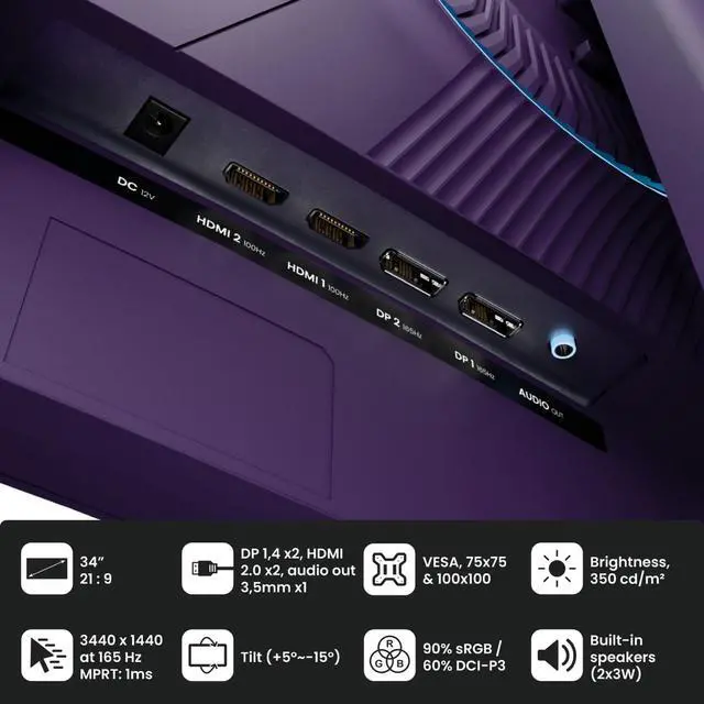 Introducing Arozzi's 34-inch curved ultrawide gaming monitor, designed to pull you deeper into the action with panoramic visuals and fluid performance across PC and console. The Nova 34" combines a VA panel with UWQHD resolution for deep contrast, wide viewing angles, and a cinematic aspect ratio. Its 165Hz refresh rate, 1ms response time, and adaptive sync support make it ideal for racing games, story-driven adventures, and multitasking. The curved design enhances immersion, while its broad color selection lets you personalize your setup with style.