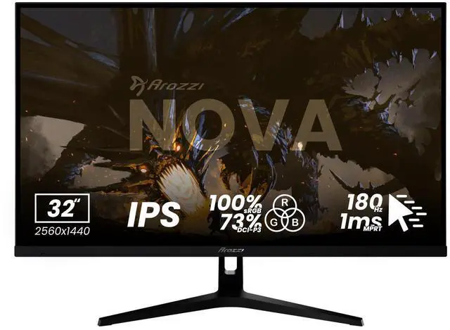 Introducing Arozzi's 32-inch QHD gaming monitor a bold step up in size and resolution for gamers and content creators who want more screen without sacrificing speed. The Arozzi Nova 32" features a crisp IPS panel with Quad HD resolution, offering sharp details, vibrant colors, and excellent viewing angles. Its 180Hz refresh rate and 1ms response time ensure smooth motion and responsive gameplay, whether you're battling online or exploring open-world titles. A great fit for immersive solo gaming and creative workflows. Available in multiple color options to match your setup.