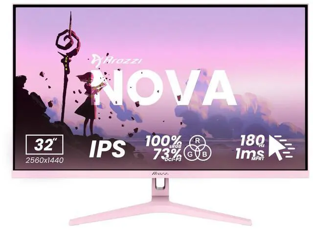 Introducing Arozzi's 32-inch QHD gaming monitor a bold step up in size and resolution for gamers and content creators who want more screen without sacrificing speed. The Arozzi Nova 32" features a crisp IPS panel with Quad HD resolution, offering sharp details, vibrant colors, and excellent viewing angles. Its 180Hz refresh rate and 1ms response time ensure smooth motion and responsive gameplay, whether you're battling online or exploring open-world titles. A great fit for immersive solo gaming and creative workflows. Available in multiple color options to match your setup.