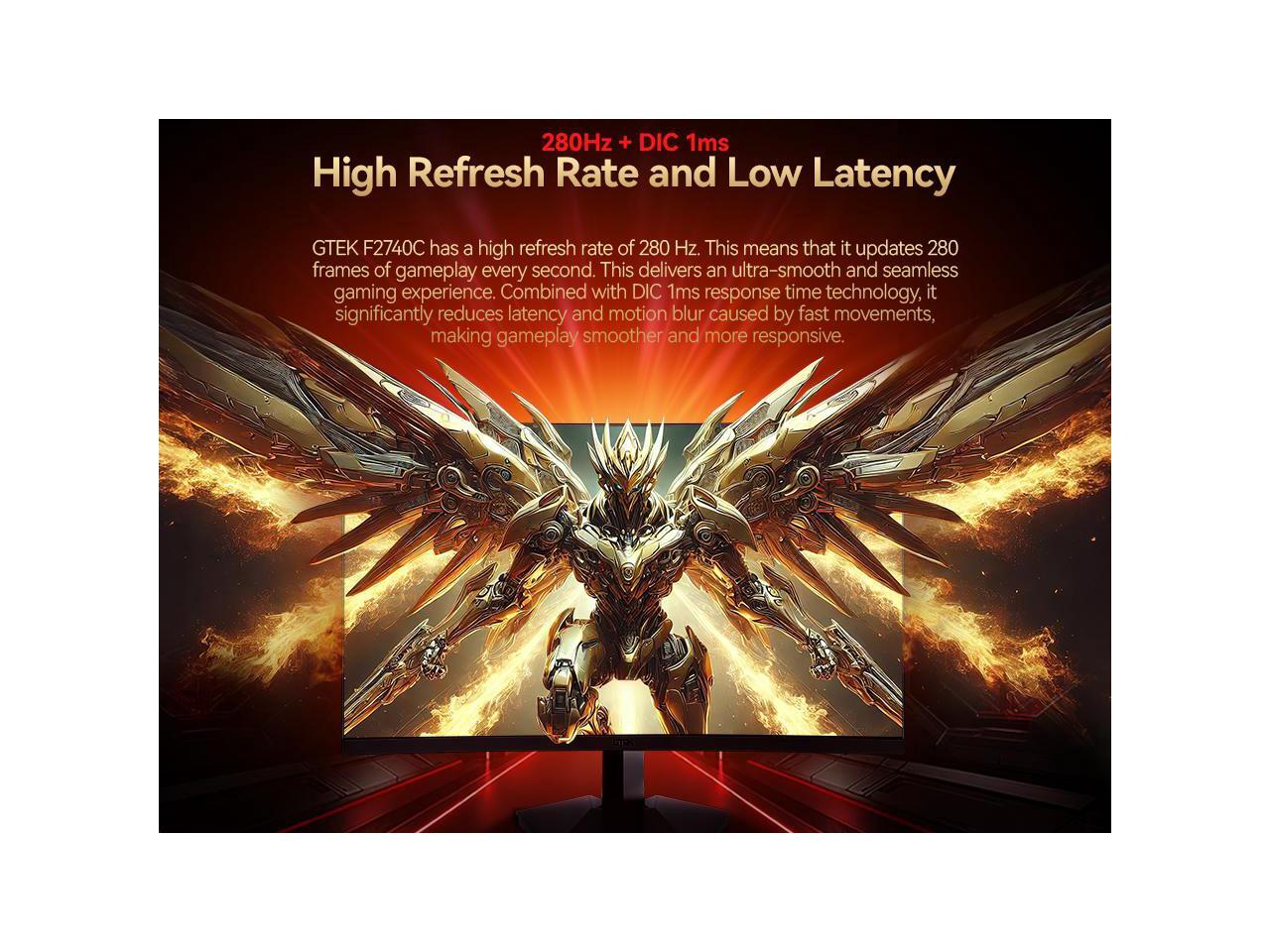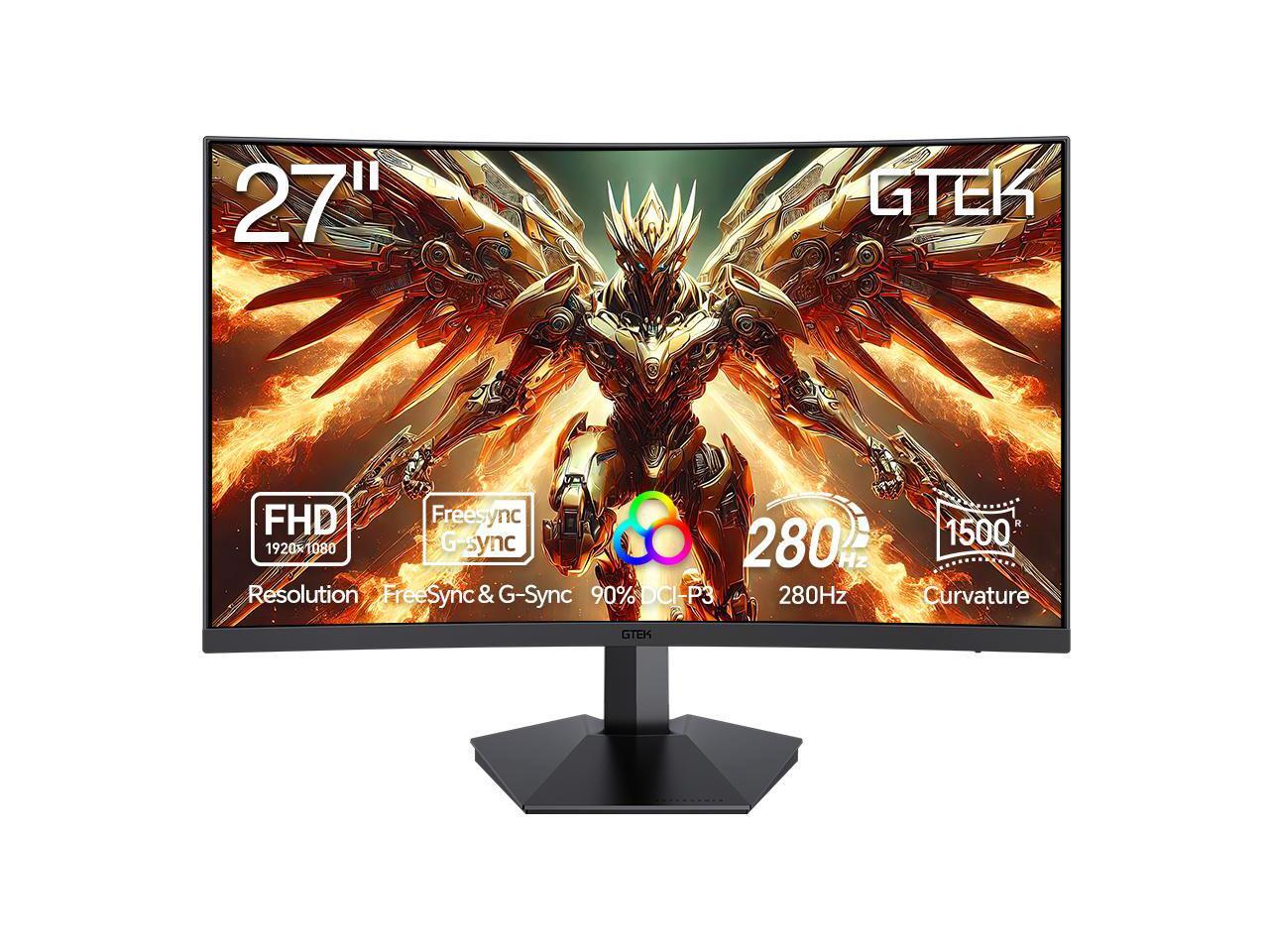 GTek 280Hz Gaming Computer Monitor, 27 Inch Frameless Display Full HD 1920 x 1080P, Curved 1500R, VA 1ms MPRT, FreeSync, DisplayPort/HDMI, 90% DCI-P3 - F2740C