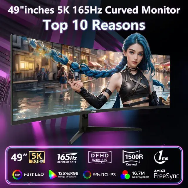 Lightning-Fast Refresh Rate: 49 inch curved monitor experience super-smooth gameplay with a 165Hz refresh rate, ensuring fluid motion and reduced input lag for competitive gaming sessions. Features AMD FreeSync technology for tear-free gaming.
