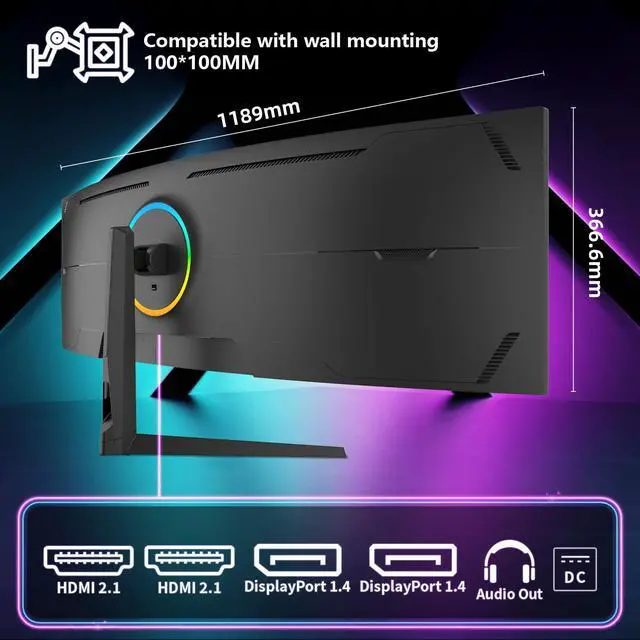 Rich interfaces : 49 inch widescreen curved moniter richful interfaces, HDMI*2/DP*2, you can directly connect your such as Laptop, tablets, gaming console,VESA-compatible mounting standard 100x100mm.Guarantee: We will provide professional after-sales service. If you have any questions, please feel free to contact us at any time.