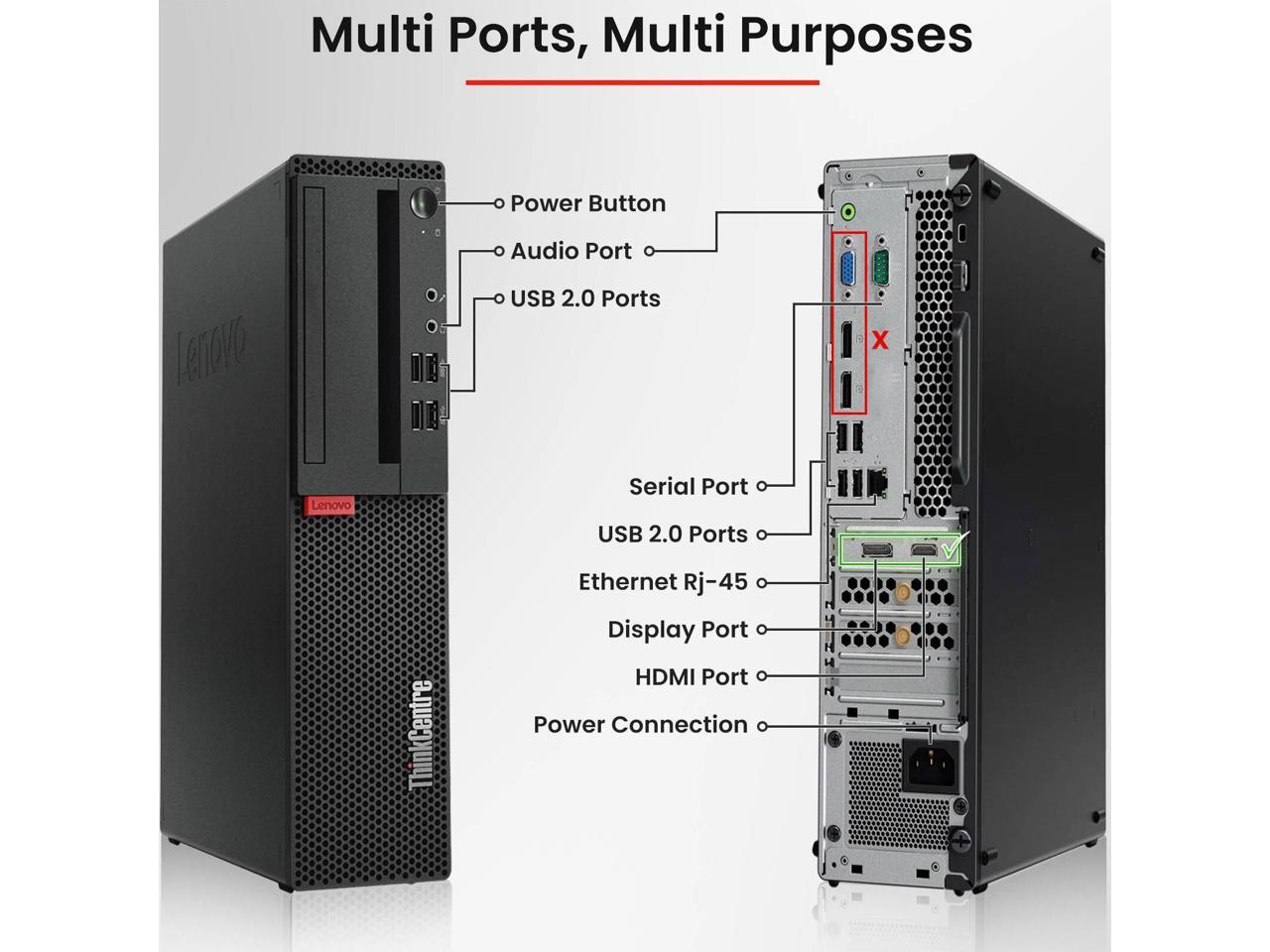 - Back Ports:2x Display Port, 2x USB 2.0 Ports,1x RJ-45,1xSerial Port, 1xVGA Port, 1xPower connection