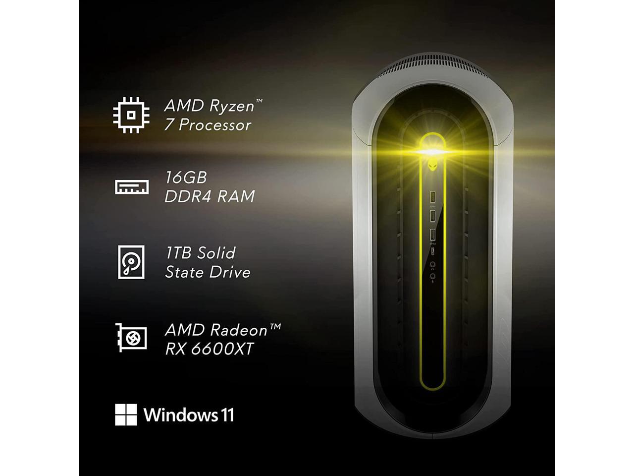 Alienware Aurora R10 Gaming Desktop - AMD Ryzen 7 5800, 16GB DDR4 RAM, 1TB SSD, AMD Radeon RX 6600XT 8GB GDDR6, VR Ready, Killer Wi-Fi 6, Liquid Cooling, 550W Power Supply, Windows 11 Home - Black