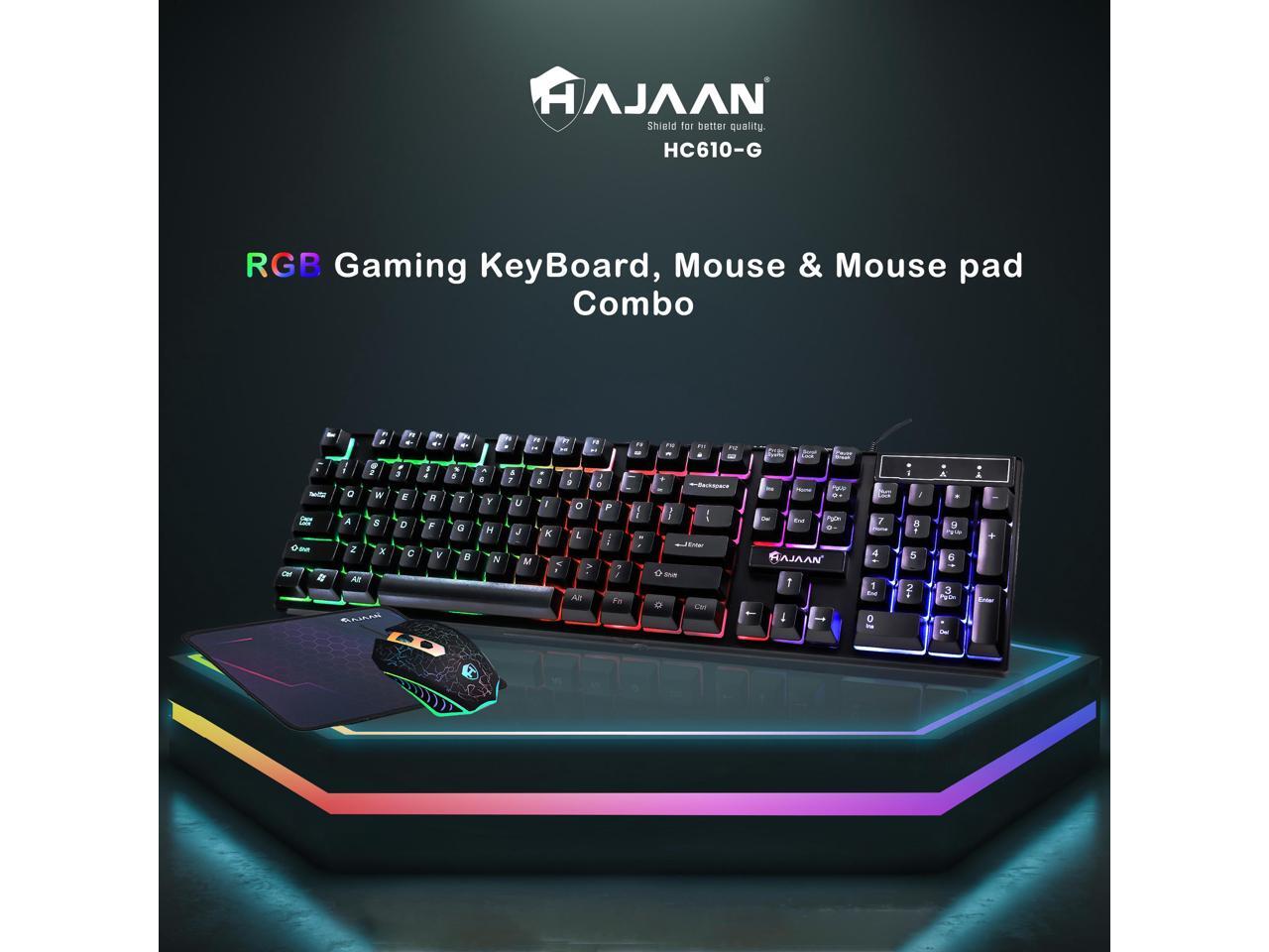 - + HAJAAN RGB GAMING KEYBOARD AND MOUSE: The Gaming Keyboard has 3 LED colors and Gaming Mouse has different colors of Backlight Lights which look amazing.