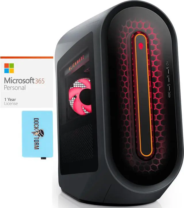 Model: Alienware Form/Style: DesktopModel No: AWAUR15-A797BLK-PUSProcessor: 7th Gen AMD Ryzen 7 7700X 4.5GHz Processor (upto 5.4GHz, 32MB Cache, 8-Cores, 16-Threads, )Memory: 16GB DDR5 DIMMGraphics: GeForce RTX 4070 Ti 12GB GDDR5 Dual (Integrated+Dedicated) Graphics, VR Ready Storage: 1TB PCIe SSD (Solid State Drive)Operating System: Windows 11 Home-64Display: No Display Connectivity: 802.11ax Wifi, Bluetooth 5.3, Ethernet LAN (RJ-45)Ports/Slots:, 4 USB 2.0, 1 x HDMI 2.1, 3 Display Port (DP), 2 USB 3.2 Type-C, No Optical Drive, 1 x Headphone/Microphone Combo JackInput/Output: No Webcam, Black, USB Keyboard, USB Mouse, Battery: 750W Power Supply, Other Features Liquid Cooling., Color: BlackWeight: 37.2lbProduct Dimensions (WxLxH): 8.86 IN x 20.83 IN x 20.08 IN