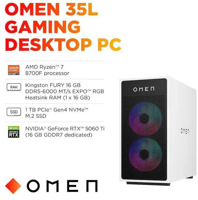 HP OMEN - 35L Gaming Desktop - AMD Ryzen 7 8700F 2024 - 16GB DDR5 Memory - NVIDIA GeForce RTX 5060 Ti 16GB GDDR7 - 1TB SSD - Panda Metal