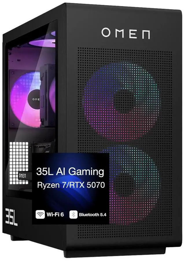 Model: HP OMEN 35LForm/Style: TowerProcessor: Zen 4 Gen Ryzen 7 8700F 4.1GHz Processor (upto 5 GHz, 16MB Cache, 8-Cores, 16-Threads, )Memory: 128GB DDR5 DIMMGraphics: NVIDIA GeForce RTX 5070 12GB GDDR7 Dedicated Graphics, VR Ready Storage: 512GB PCIe SSD (Solid State Drive) + 6TB HDD (Hard Disk Drive)Operating System: Windows 11 Home-64Display: Connectivity: 802.11ax Wifi, Bluetooth 5.4, RJ-45Ports/Slots:, 4 USB 2.0, HDMI, 3 Display Port, 2 USB 3.2 Type-C, 1 x Headphone/Microphone Combo JackInput/Output:, White, USB Keyboard, USB Mouse, Battery: 850W PSU, Other Features RGB Lighting, Color: Panda MetalWeight: 28.8lbProduct Dimensions (WxLxH): 16.6 IN x 16.75 IN x 8.25 IN1 Year Manufacturer warranty from Velztorm (Professionally upgraded by Velztorm)