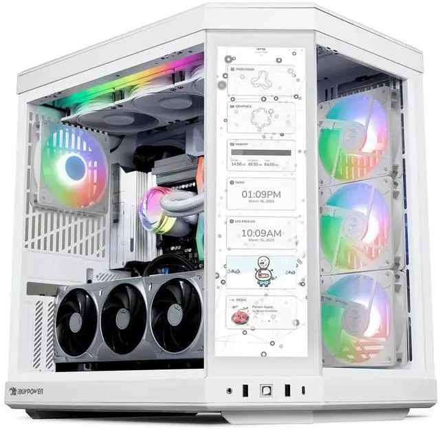 Level up your setup with the iBUYPOWER Y70TIWI9N57T01, the perfect gaming PC build for someone looking to upgrade their desktop computer system for video games, editing, and streaming. This gaming PC even uses the HYTE Y70 Touch Infinite touch screen to add engaging hardware paired with powerful Nexus Link software.