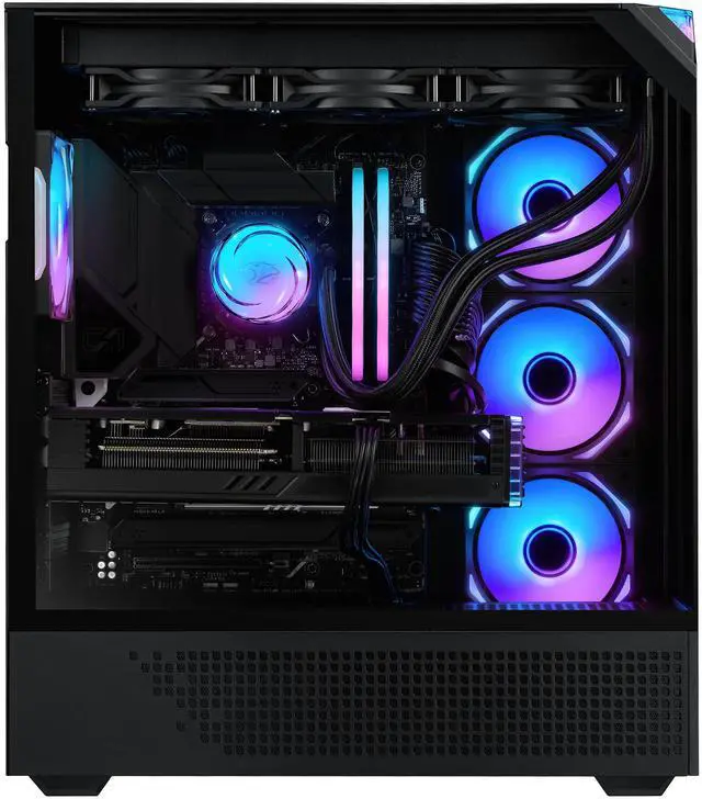 Discover the gamer experience and upgrade your RGB setup thanks to the included iBUYPOWER gaming keyboard and mouse. To keep your computer cool and quiet at full power, the EPBI7N5701 boasts the new 2024 iBUYPOWER AW4 AIO, a 360mm liquid CPU cooling system - AW4 CPU cooler, and RGB fans in a premium HYTE/iBUYPOWER Element Pro case.