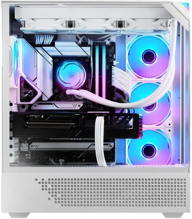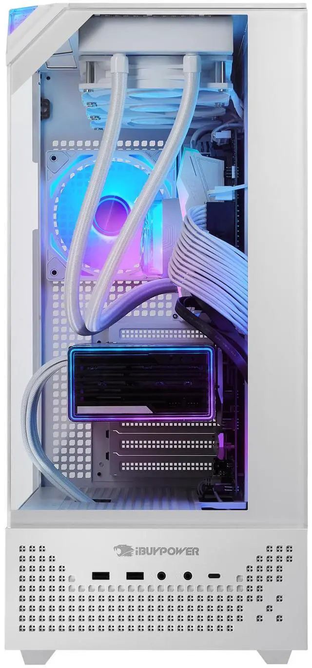 To keep your computer cool and quiet at full power, the EPWA7N57T01 boasts the new 2024 iBUYPOWER AW4 AIO, a 360mm liquid CPU cooling system - AW4 White CPU cooler, and RGB fans in a premium iBUYPOWER Element Pro case.