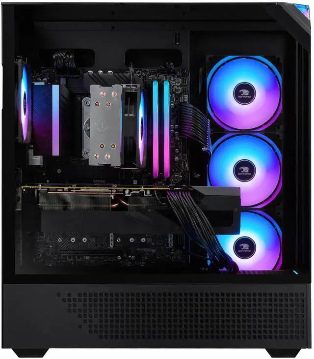 Discover the gamer experience and upgrade your RGB setup thanks to the included iBUYPOWER gaming keyboard and mouse. To keep your computer cool and quiet at full power, the EBI9N5703 boasts the new Tower Air Cooler, a performance air fan CPU cooler, and RGB fans in a premium iBUYPOWER Element case.