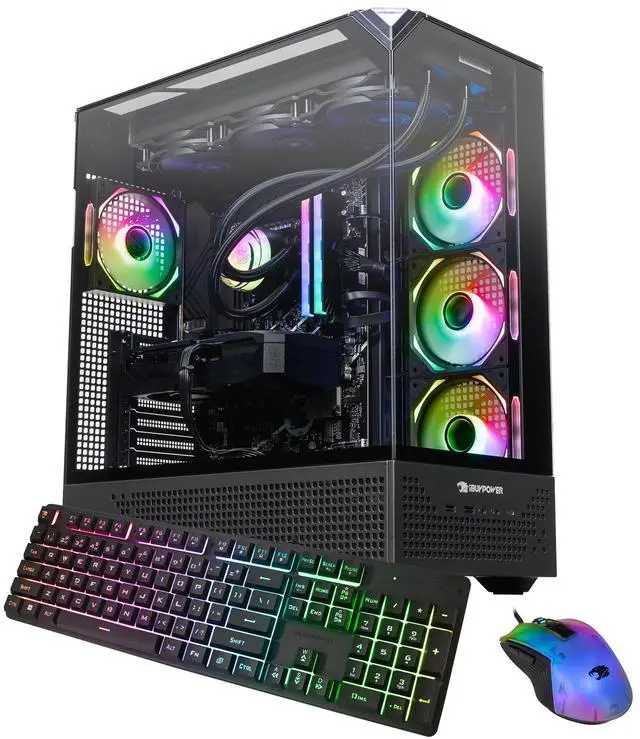 Discover the gamer experience and upgrade your RGB setup thanks to the included iBUYPOWER gaming keyboard and mouse. To keep your computer cool and quiet at full power, the EPBA7R97XT02 boasts the new 2024 iBUYPOWER AW4 AIO, a 360mm liquid CPU cooling system - AW4 CPU cooler, and RGB fans in a premium iBUYPOWER Element Pro case.