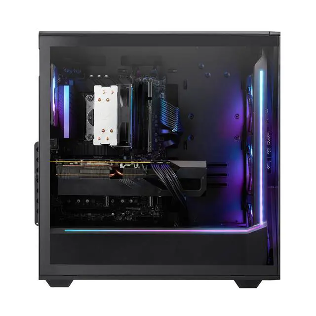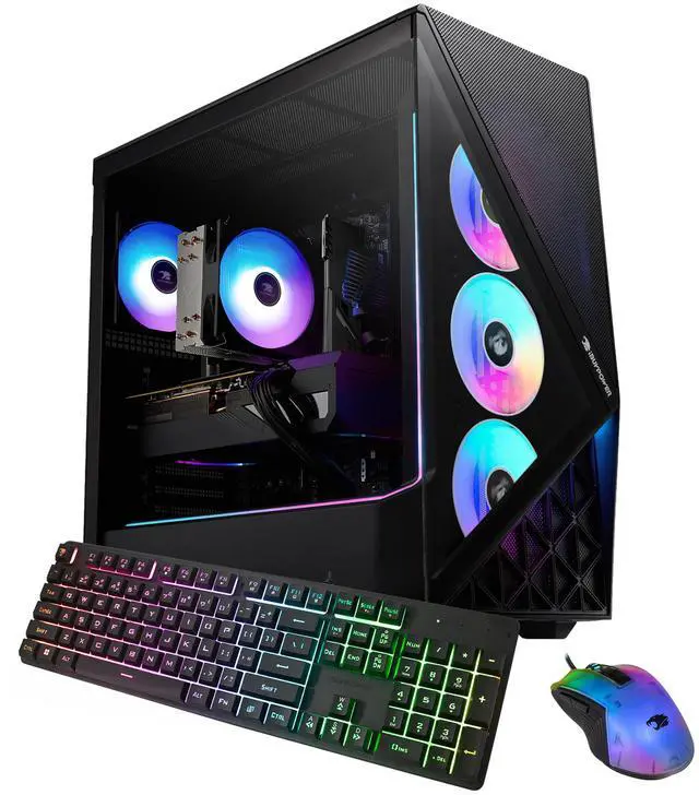 Discover the gamer experience and upgrade your RGB setup thanks to the included iBUYPOWER gaming keyboard and mouse. To keep your computer cool and quiet at full power, the SBI7N56T07 boasts the new Tower Air Cooler, a performance air fan CPU cooler, and RGB fans in a premium iBUYPOWER Slate case.