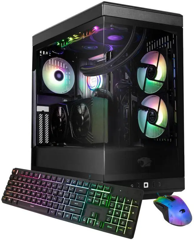 Discover the gamer experience and upgrade your RGB setup thanks to the included iBUYPOWER gaming keyboard and mouse. To keep your computer cool and quiet at full power, the SBA7N56T03 boasts the new 2024 iBUYPOWER AW4 AIO, a Tower Air Fan CPU cooler, and RGB fans in a premium iBUYPOWER Slate case.