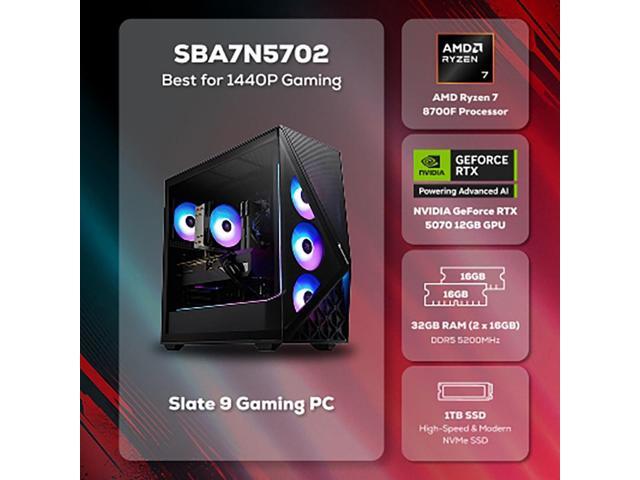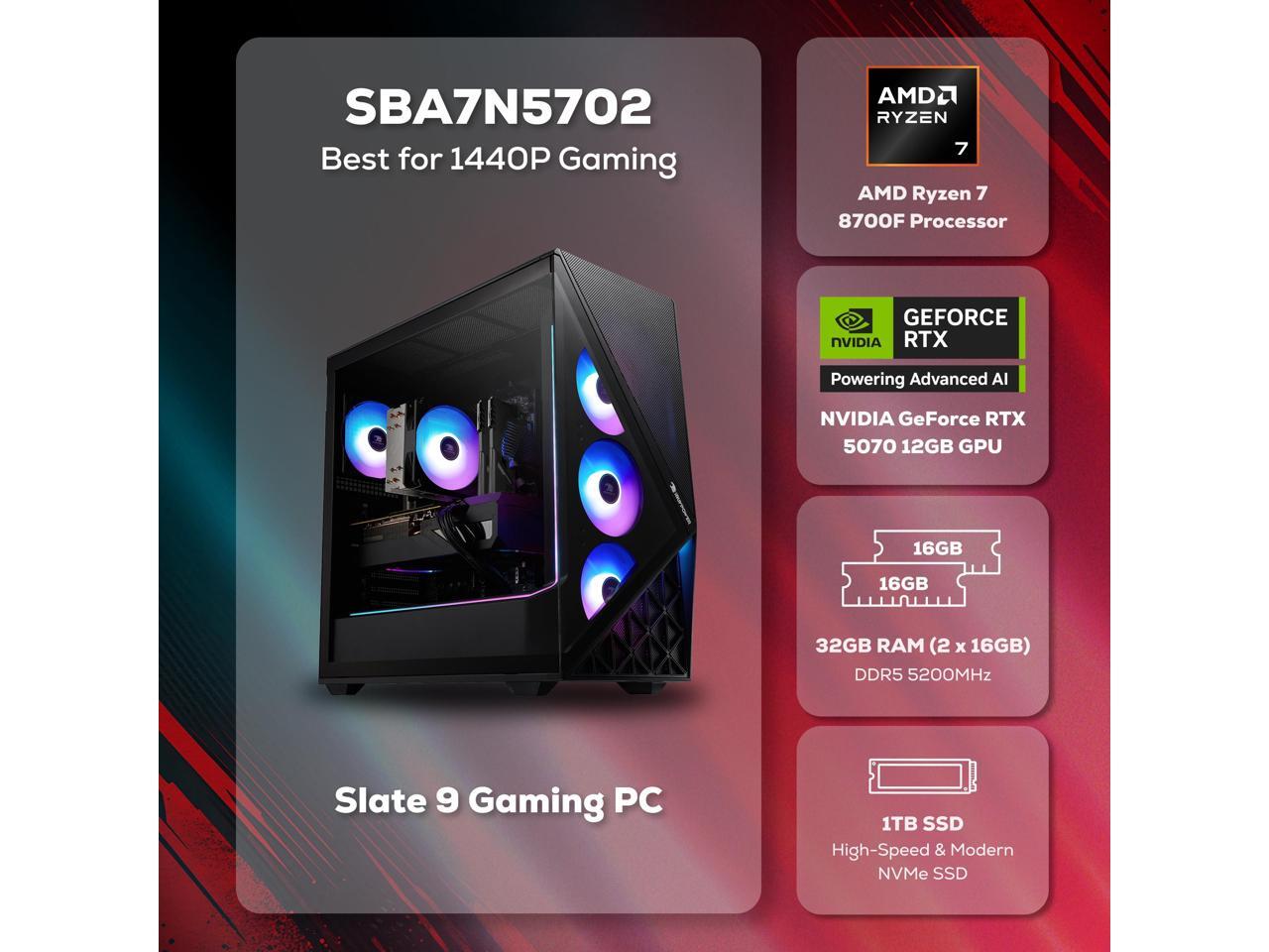 iBUYPOWER Slate Gaming PC Desktop Computer AMD Ryzen 7 8700F CPU, NVIDIA GeForce RTX 5070 12GB GPU, 32GB DDR5 RAM, 1TB NVMe SSD, Windows 11 Home, Keyboard, Mouse - Black
