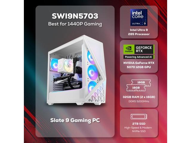 iBUYPOWER Slate Gaming PC Desktop Computer Intel Core Ultra 9 285 CPU, NVIDIA GeForce RTX 5070 12GB GPU, 32GB DDR5 RAM, 2TB NVMe SSD, Windows 11 Home, Keyboard, Mouse - White