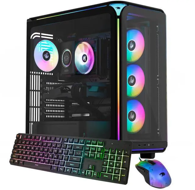 Discover the gamer experience and upgrade your RGB setup thanks to the included iBUYPOWER gaming keyboard and mouse. To keep your computer cool and quiet at full power, the EXBA7N5702 boasts the new Tower Air Cooler AC5, a performance air fan CPU cooler with PC stats displayed, and RGB fans in a premium iBUYPOWER Element case.
