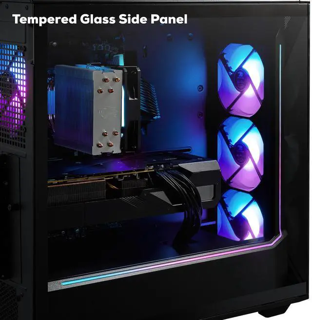 Discover the gamer experience and upgrade your RGB setup thanks to the included iBUYPOWER gaming keyboard and mouse. To keep your computer cool and quiet at full power, the SBI7N5701 boasts the new Tower Air Cooler, a performance air fan CPU cooler, and RGB fans in a premium iBUYPOWER Slate case.