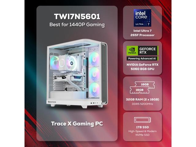 iBUYPOWER Trace Gaming PC Desktop Computer Intel Core Ultra 7 265F CPU, NVIDIA GeForce RTX 5060 8GB GPU, 32GB DDR5 RAM, 1TB NVMe SSD, Windows 11 Home, Keyboard, Mouse White
