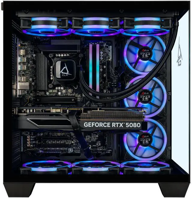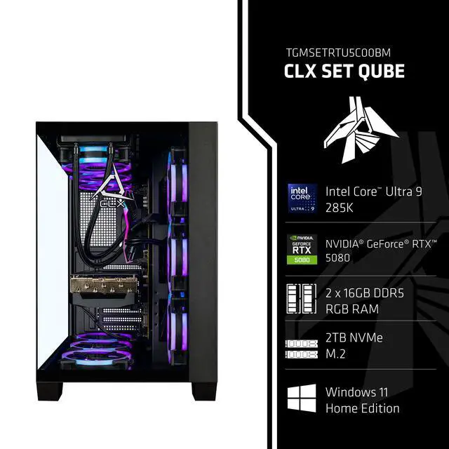 Dominate the digital battlefield with a gaming desktop engineered for elite performance. At its core, the liquid-cooled Intel Core Ultra 9 285K processor delivers blistering speeds up to 5.70GH z turbo, ensuring smooth gameplay and multitasking power. Paired with the GeForce RTX 5080 graphics card featuring 16GB of GDDR7 memory, this system delivers breathtaking visuals and fluid frame rates for next-gen gaming experiences. With 32GB of DDR5 memory and a spacious 2TB SSD, expect lightning-fast load times and effortless responsiveness across your favorite titles and creative applications. Equipped with wired Gigabit and WiFi connectivity and running Windows 11 Home, this mid-tower masterpiece combines RGB style with precision engineering.