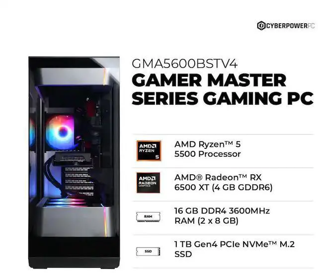 CyberPowerPC - Gaming Desktop - AMD Ryzen 5 5500 - AMD Radeon RX 6500 XT 4GB - 16GB Memory - 1TB PCIe 4.0 SSD - Black