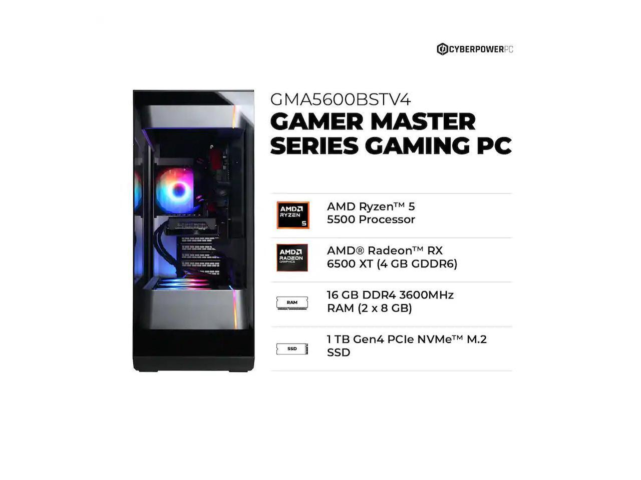 CyberPowerPC - Gaming Desktop - AMD Ryzen 5 5500 - AMD Radeon RX 6500 XT 4GB - 16GB Memory - 1TB PCIe 4.0 SSD - Black