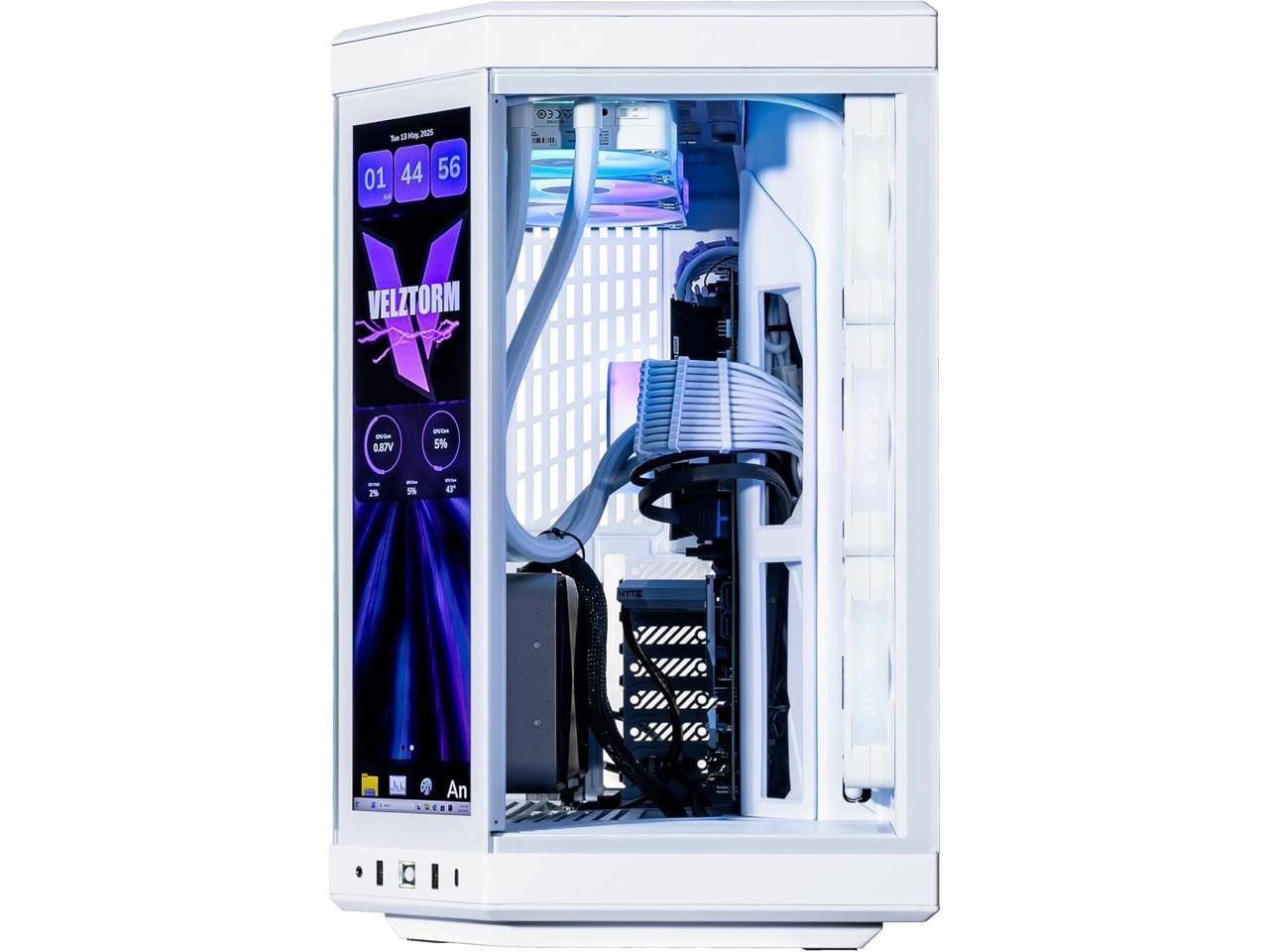 Velztorm LCD Praetix Custom Built Y70 Touch Gaming Desktop PC (Intel i9-14900K, GeForce RTX 5090, 64GB DDR5, 2TB PCIe SSD + 6TB HDD, RGB Fans, 360mm AIO, 1000W PSU, WiFi 6, BT 5.2, RJ-45, Win 11 Home)