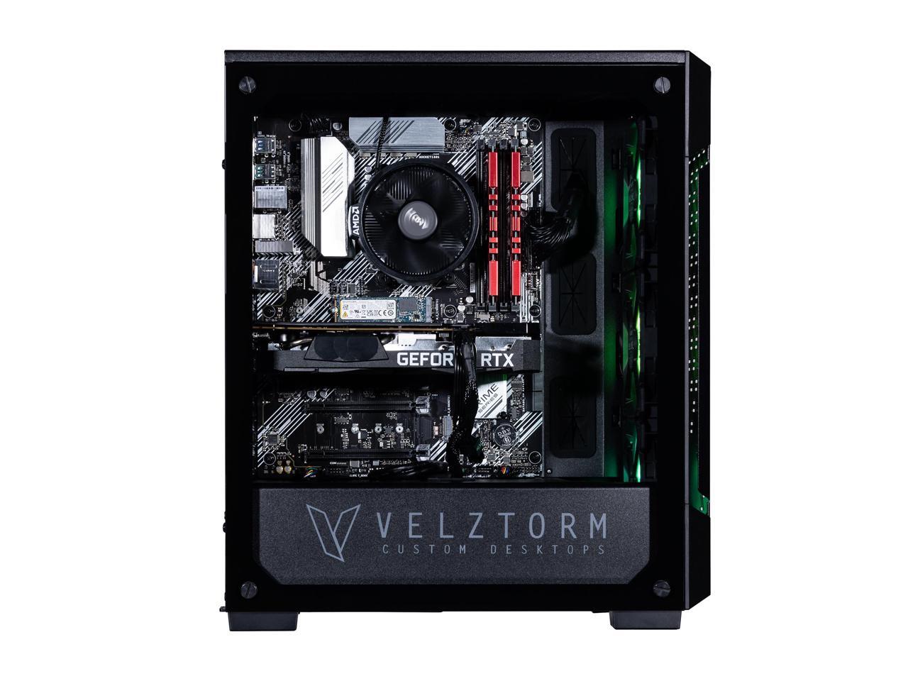 Velztorm Fultix Custom Built Gaming Desktop PC (AMD Ryzen 5-5500, GeForce RTX 5070, 32GB DDR4, 1TB PCIe SSD + 2TB HDD, 750W PSU, WiFi 4, Bluetooth 4.2, RJ-45, HDMI, Win 10 Home)