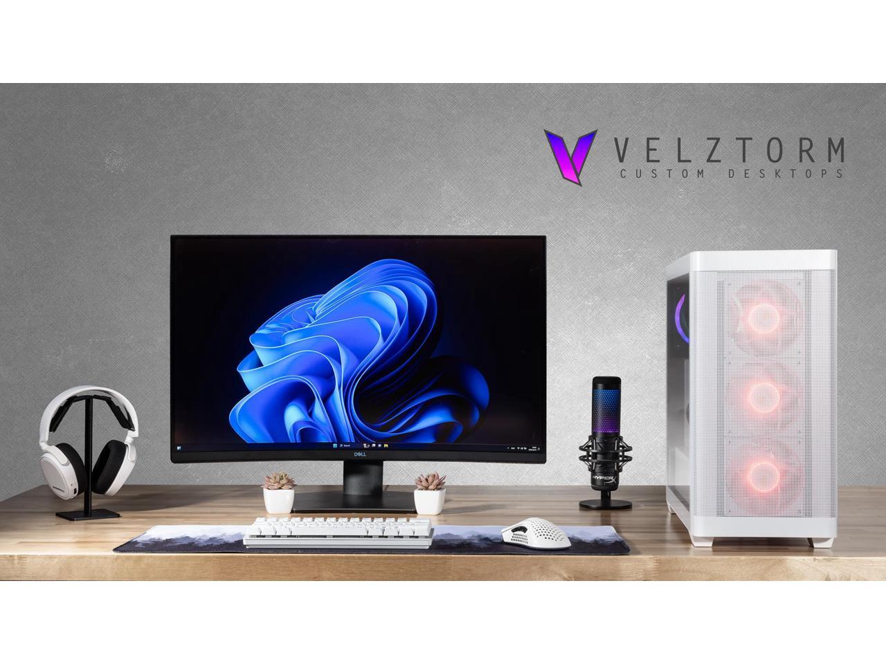 Velztorm White Pilum Custom Built Gaming Desktop PC (AMD Ryzen 7 5700X, GeForce RTX 5060, 32GB DDR4, 2TB PCIe SSD + 2TB HDD, RGB Fans, 120mm AIO, 750W PSU, WiFi 5, Bluetooth 5.0, RJ-45, Win 11 Home)