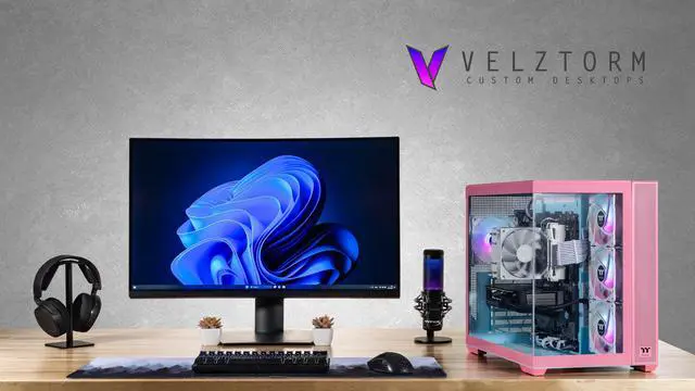 Velztorm Pink Fultix Gaming Desktop PC (AMD Ryzen 5-5500, GeForce RTX 5060, 32GB DDR4, 1TB PCIe SSD + 2TB HDD, RGB Fans, 750W PSU, WiFi 5, Bluetooth 5.0, RJ-45, 1 Display Port, HDMI, Win 11 Home)